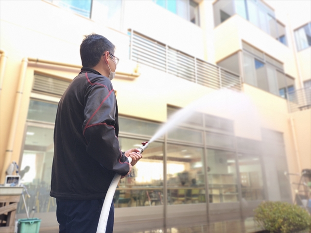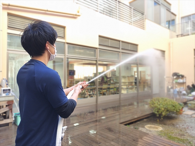 水圧がすごい!ホースをしっかりと握っていないと、後ろにバランスを崩してしまいます!