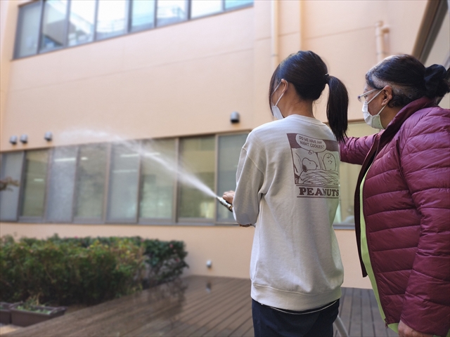 基本的には消化器で実施しますが、火災が広がりスプリンクラーが届かないエリアは消火栓で初期消火を試みます!