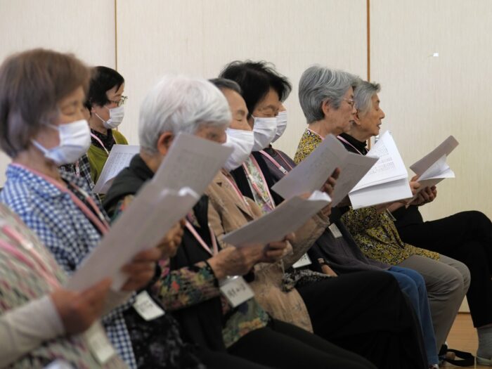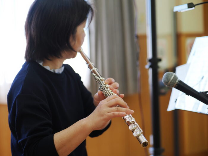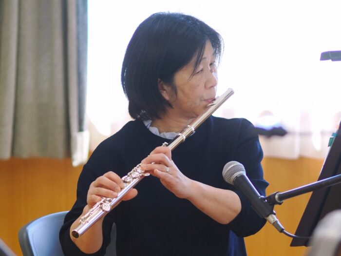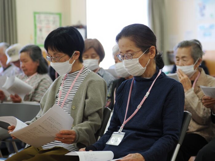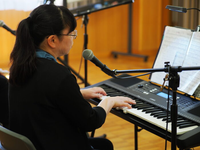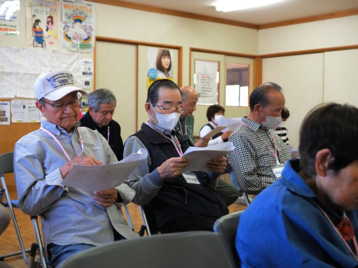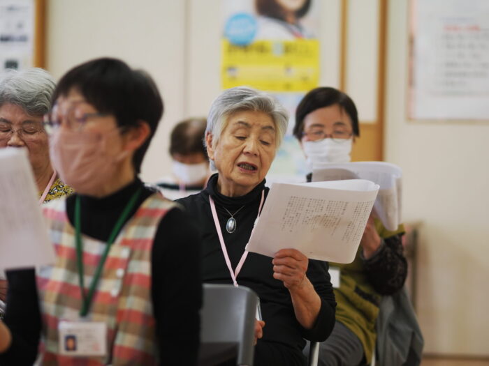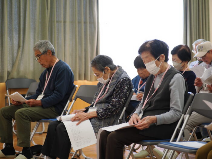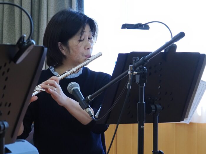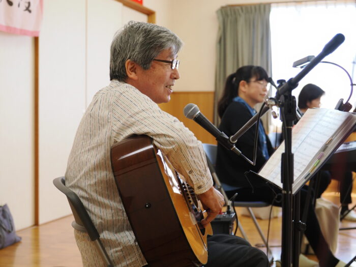 「ふれあいサロン小沢渡」は18年前に設立され、小沢渡町の六所神社にある小沢渡会館で活動しているサロンです。50名程度の皆さんが活動されており、今日は30名の皆さんが演奏を聴きにくてくださいました!歌が好きな方が多いサロンとのことです。